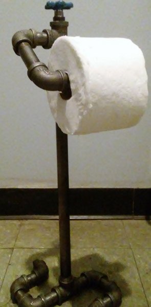 The toilet paper holder was built from recycled iron piping it will add a touch of class to a loft, office, rustic style home decor, and an industrial space. This pipe toilet paper holder has a strong personality, perfect for giving your bathroom a character. Most people just put the toilet paper on a standard spindle holder mounted with two brackets on the wall. Grab your supplies of pipe fittings as well as mounting screws and wall anchors. Industrial cast iron pipe with stained woodnen base.